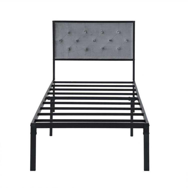 Introducing ANSTON, a sleek black Iron Bed frame wrapped in sumptuous Velvet for a perfect blend of industrial strength and luxurious comfort. Elevate your bedroom with this stylish, durable piece designed to add modern elegance to any space.