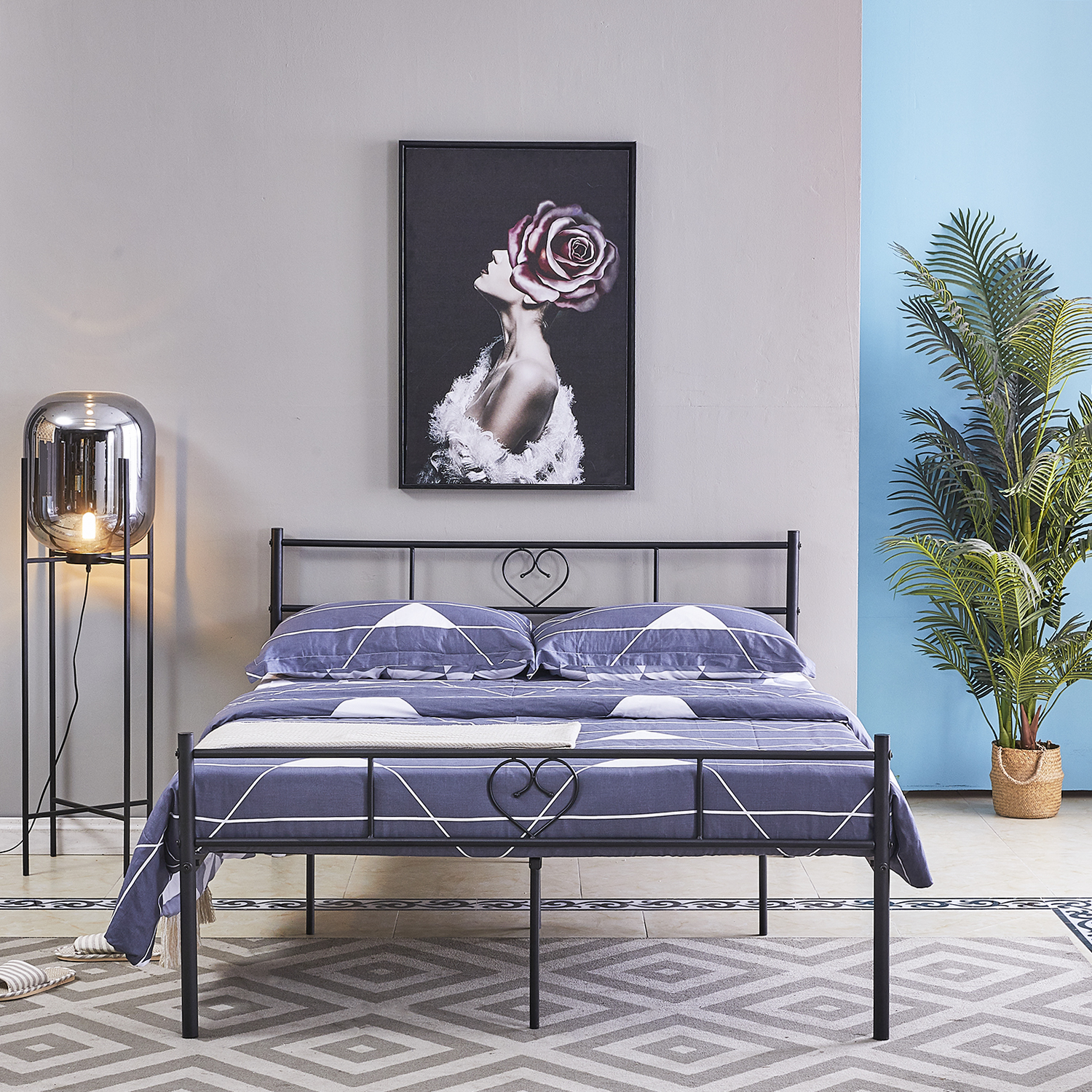 Introducing HAYSI, a sleek black Iron Bed that combines modern elegance with durable craftsmanship. Perfect for upgrading your bedroom, this stylish bed frame offers both timeless appeal and sturdy support, making it an ideal choice for any contemporary living space.