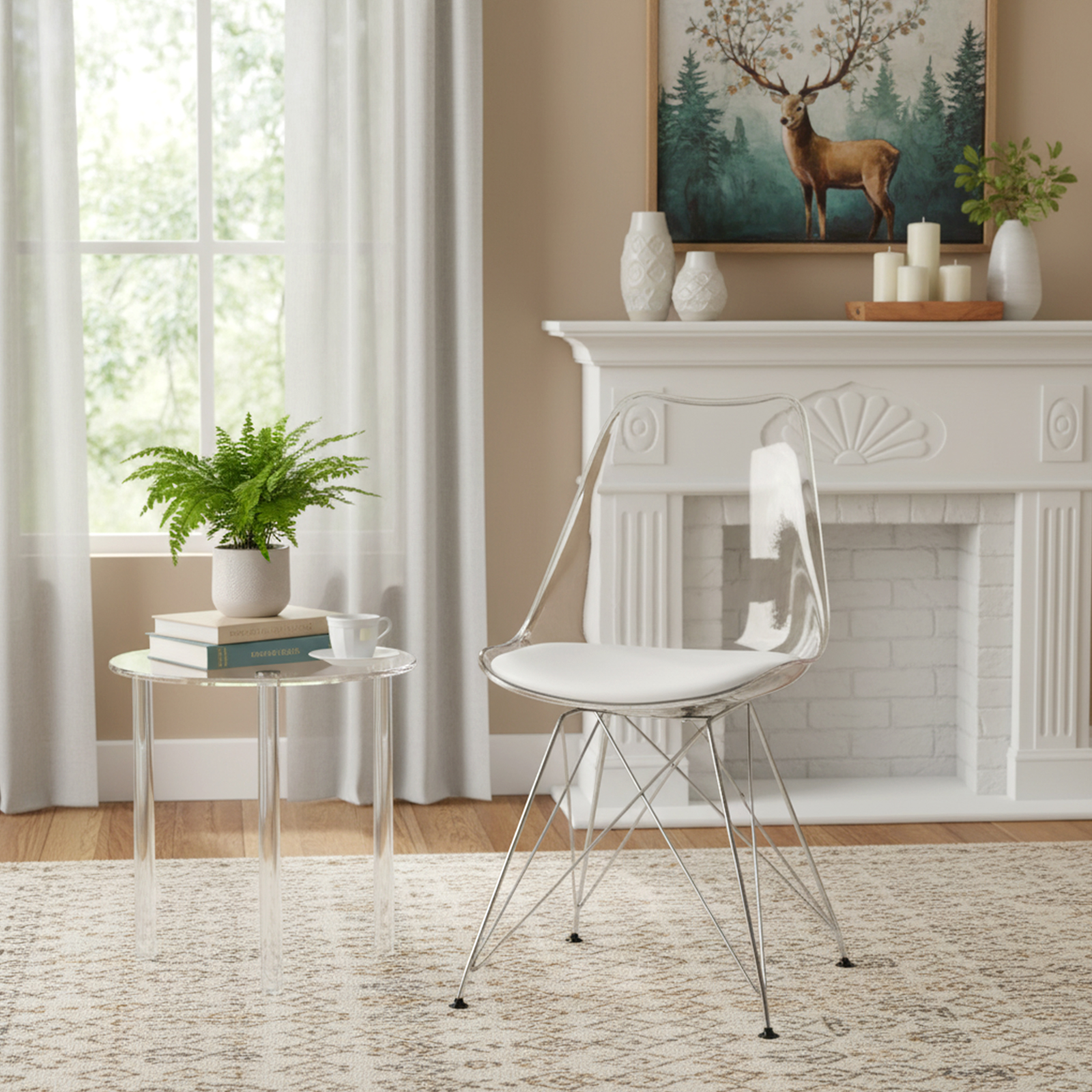Introducing OSTEEN, the stunning transparent Plastic Chair with a durable Iron frame. Perfect for modern spaces, this sleek chair combines style and sturdiness, elevating your home or office decor effortlessly.