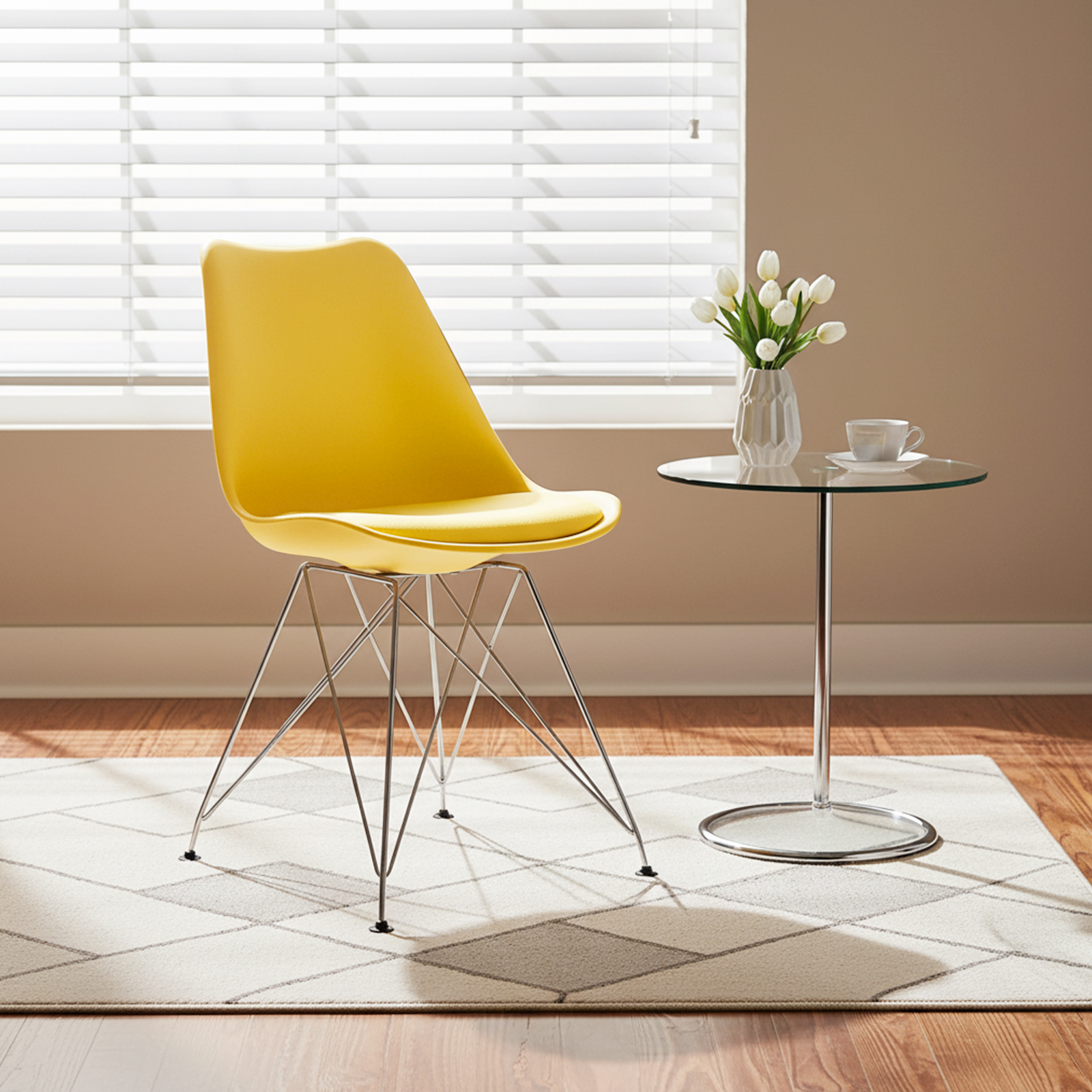 Introducing OSTEEN, a vibrant yellow Chair crafted with durable Plastic and sturdy Iron for lasting comfort and style. Perfect for adding a cheerful touch to any space while ensuring reliable support. Elevate your decor with this eye-catching, high-quality seating solution.