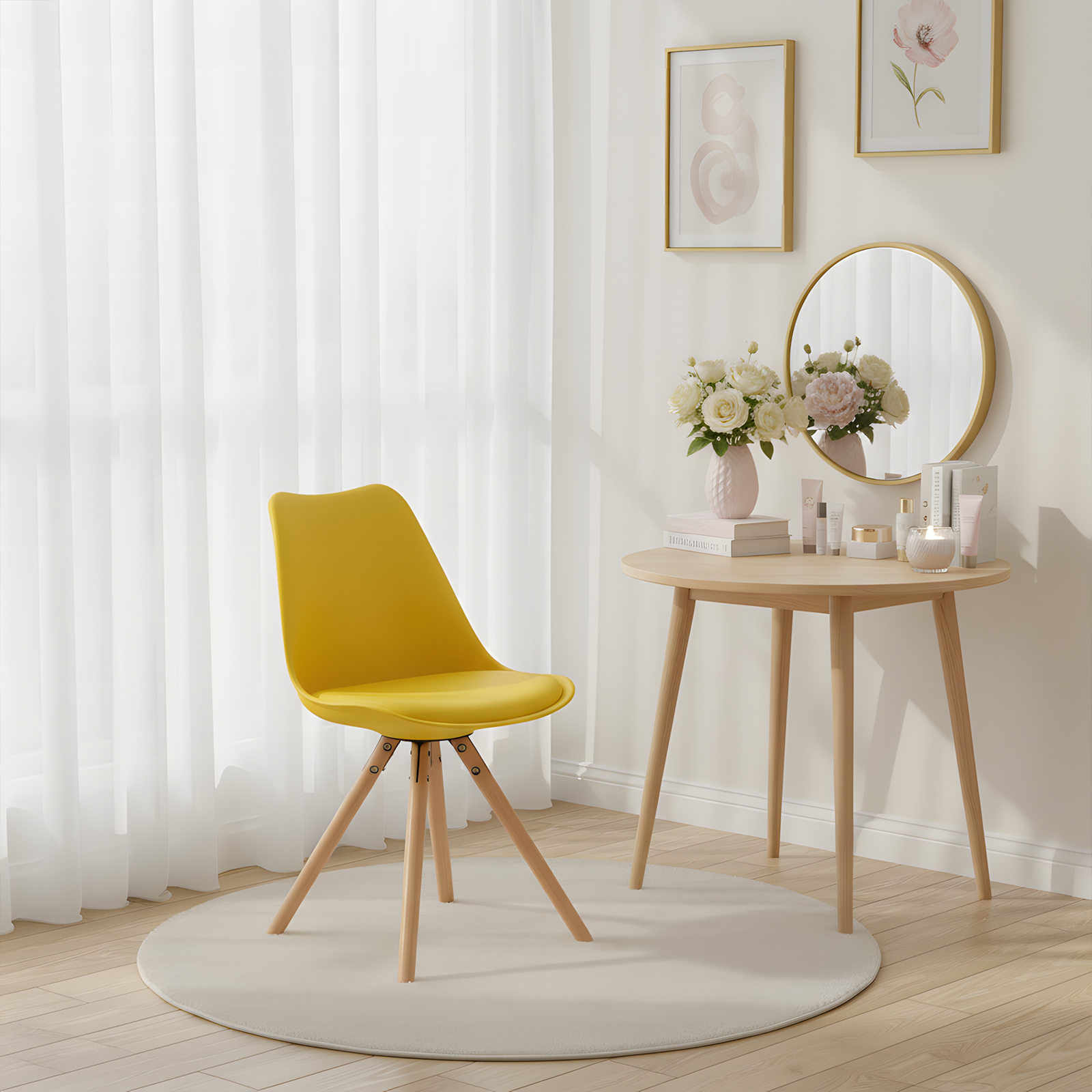 Introducing OSTEEN, a vibrant yellow Chair crafted with durable Plastic and elegant Beech accents. Perfect for adding a pop of color and style to any space, this chair combines functionality with a sleek design. Ideal for both home and office use, OSTEEN offers comfort and a modern aesthetic that stands out. Upgrade your seating experience with this eye-catching and sturdy piece today.