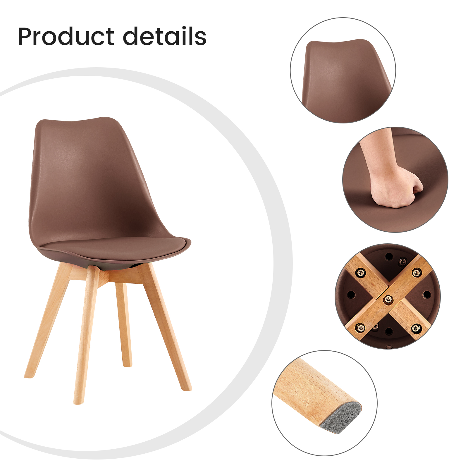 Introducing TULIP, the exquisite chocolate-colored Chairs crafted with premium Plastic as the main material, complemented by elegant Beech and luxurious PU Leather accents. A perfect blend of style and durability, TULIP chairs elevate any space with their timeless design and superior craftsmanship. Ideal for both modern and classic interiors, these chairs offer comfort and sophistication in every detail. Discover the perfect seating solution with TULIP today.