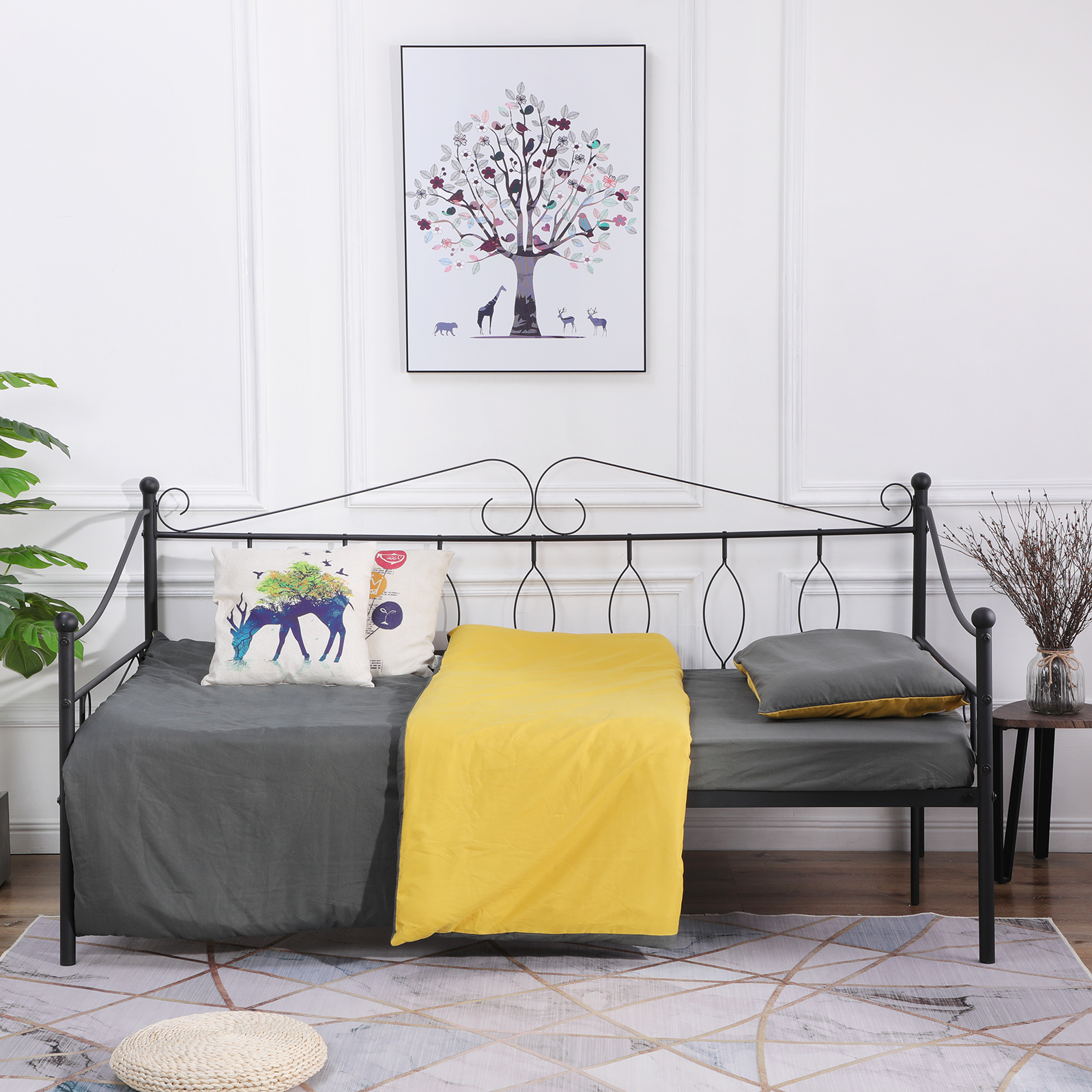 Introducing WILMA, a sleek black Iron Bed that combines modern elegance with durable craftsmanship. Perfect for enhancing any bedroom decor, this stylish bed frame offers both stability and timeless appeal, making it an ideal choice for those seeking quality and sophistication in their sleep space.