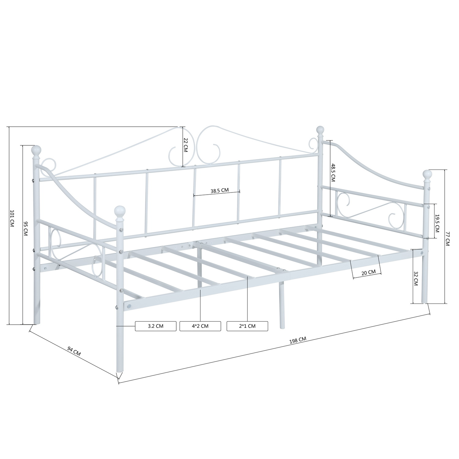 • Product Dimensions (L x W x H): 197.0 x 93.2 x 95.0 CM