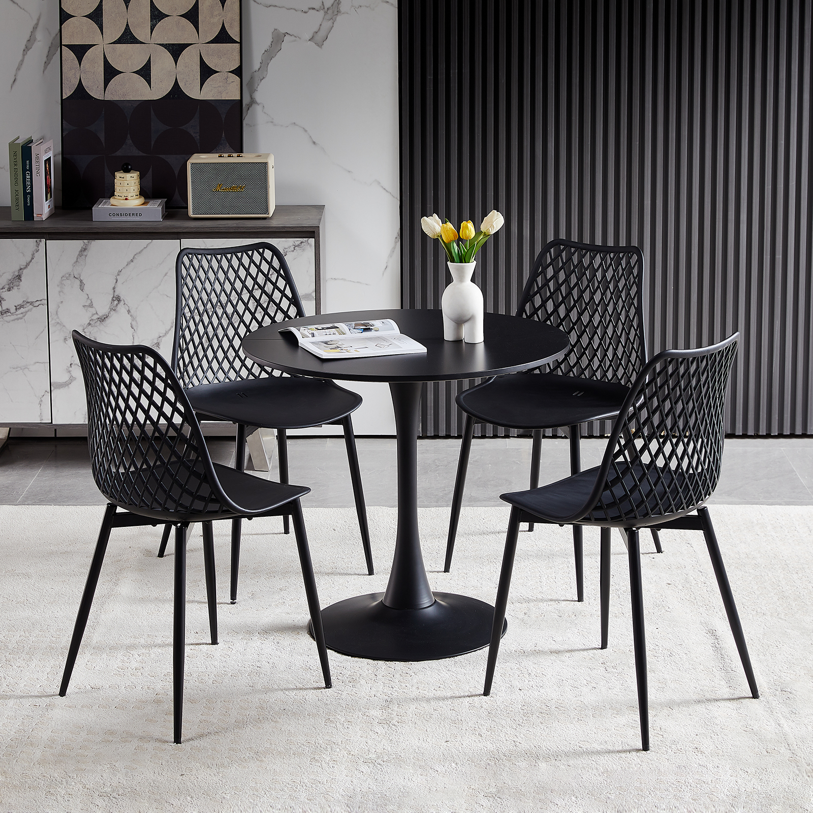 Introducing DEWEY, a sleek black Tables crafted with premium MDF and sturdy Iron, blending modern elegance with durable design for your living space.