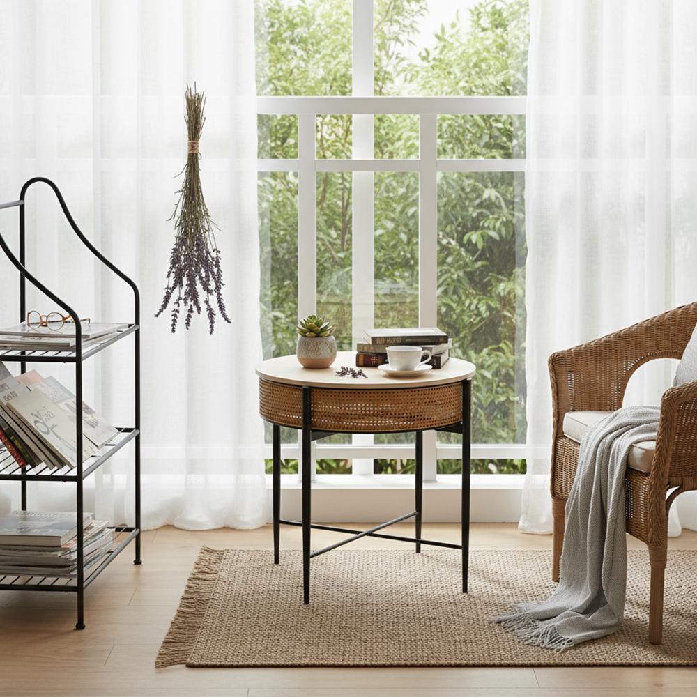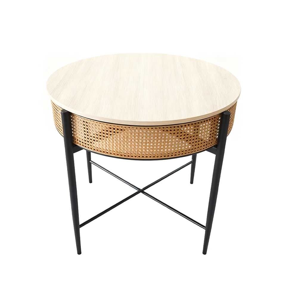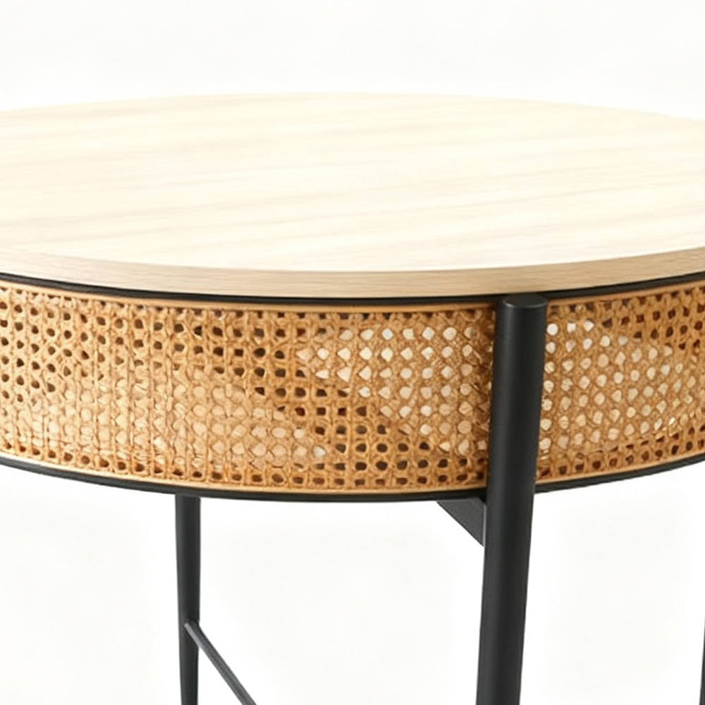 Introducing DUNDEE, a stunning oak-colored Tables crafted with durable Plastic rattan, complemented by sturdy MDF and Iron materials. Elevate your space with this perfect blend of style and resilience, designed to enhance both functionality and aesthetic appeal.