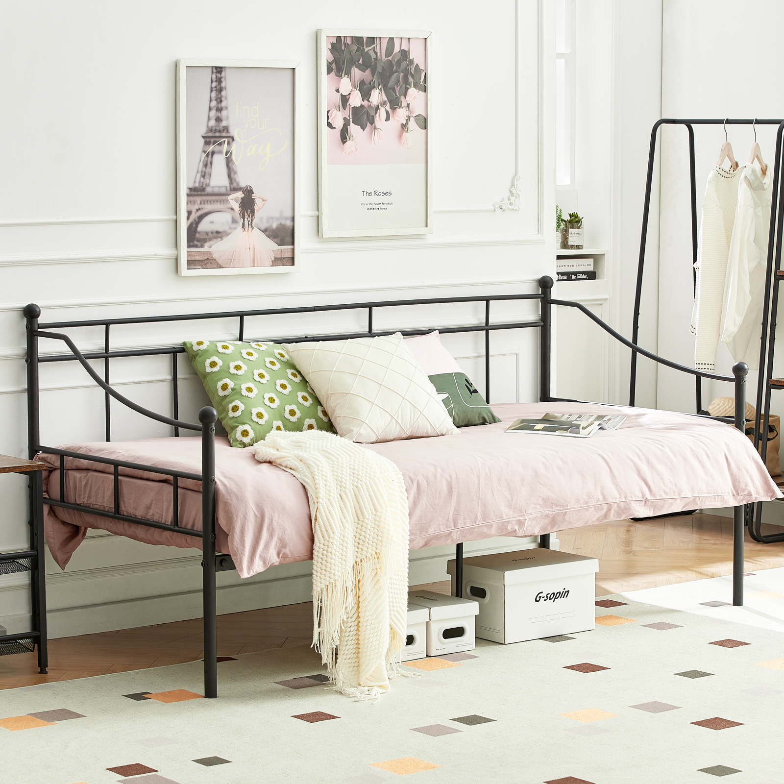 HILAND Iron Bed – Sleek Black Design for Modern Bedrooms. Crafted with durable Iron, this stylish bed combines industrial charm with contemporary elegance, perfect for elevating your sleep space. Shop now for a timeless addition to your home.