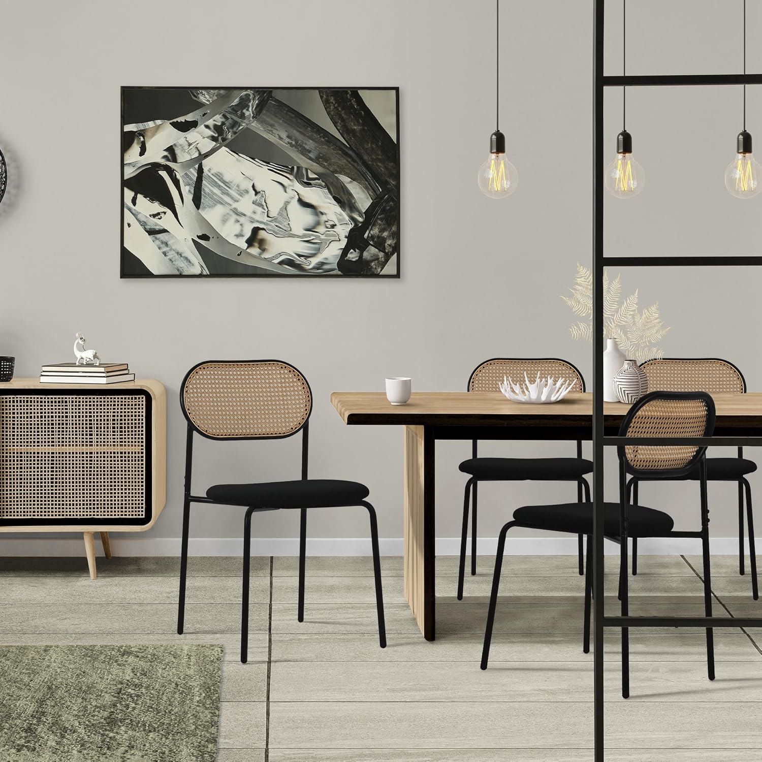 Introducing SARAH, a stunning black Chair crafted with durable Plastic rattan and complemented by sturdy Iron and luxurious Velvet accents. Elevate your space with this perfect blend of style and resilience, designed to bring both comfort and elegance to any setting.