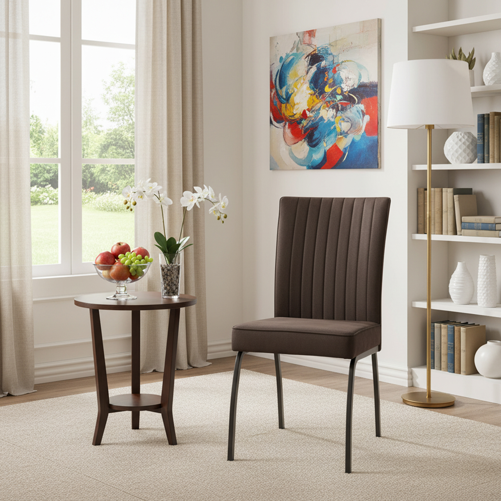 Introducing WELAKA, a stunning brown chair crafted with premium Tech cloth and sturdy Iron for both style and durability. Elevate your space with this perfect blend of comfort and modern design.